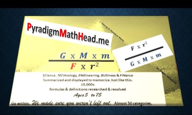 Explore 10,000+ easy-to-memorize, yes we did say easy PYRADIGM photographic math formulas, fully classified, giving Educators & other Professionals that needed relief, and you our highly respected and inspired students this super career advantage even before getting to college and beyond.